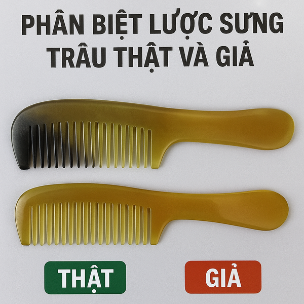 Vân Sừng Độc Đáo: Lược sừng trâu thật luôn có vân sừng tự nhiên, không đồng đều, và không có hai chiếc lược nào có vân giống hệt nhau (vân mây, vân hổ phách, sọc đen-trắng). Lược nhựa hoặc sừng giả thường có màu sắc và vân đồng nhất.