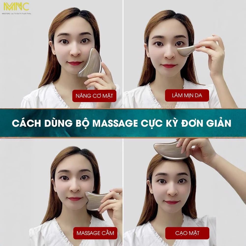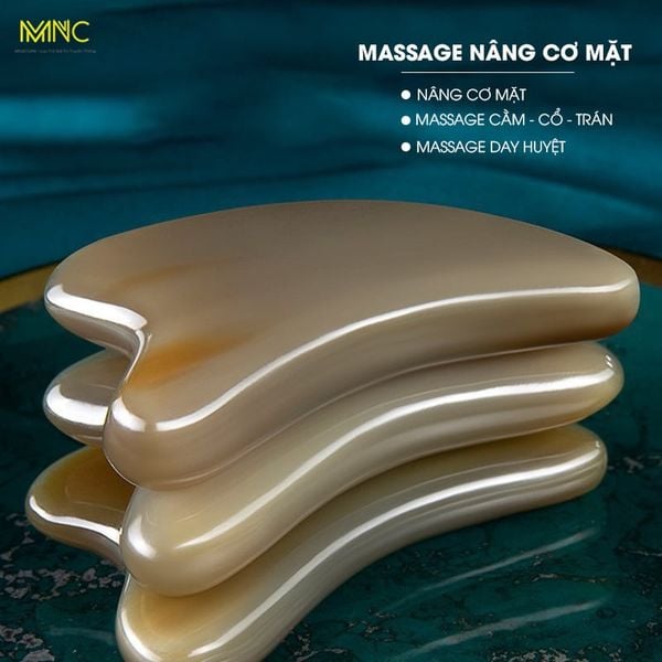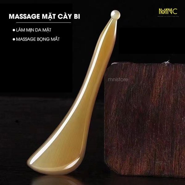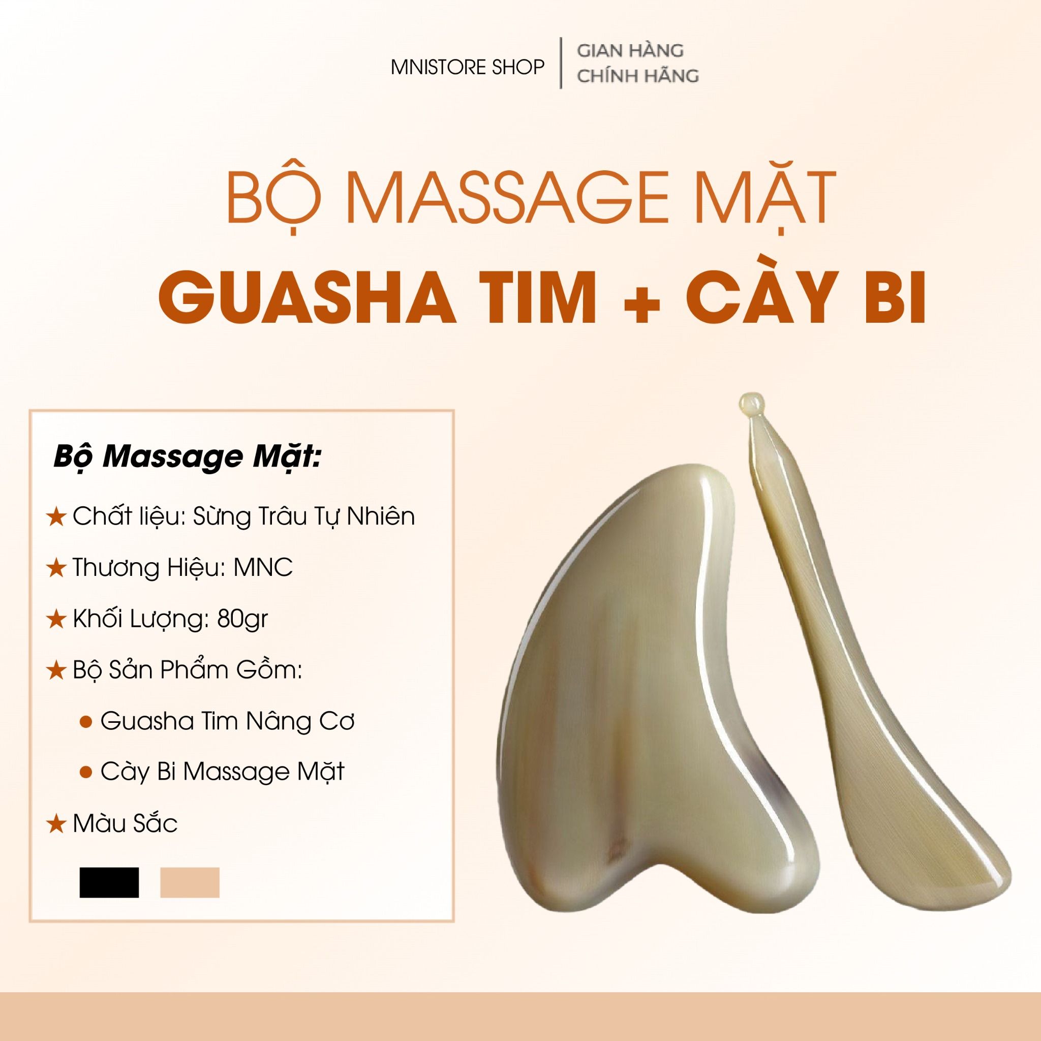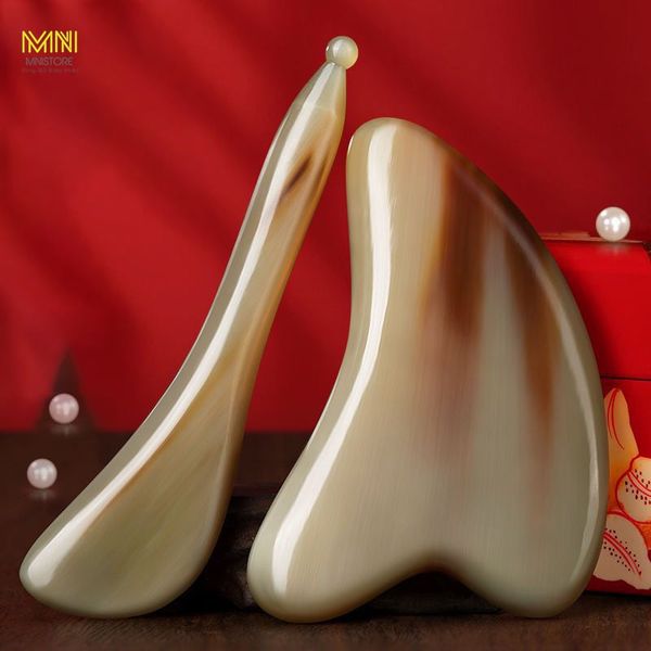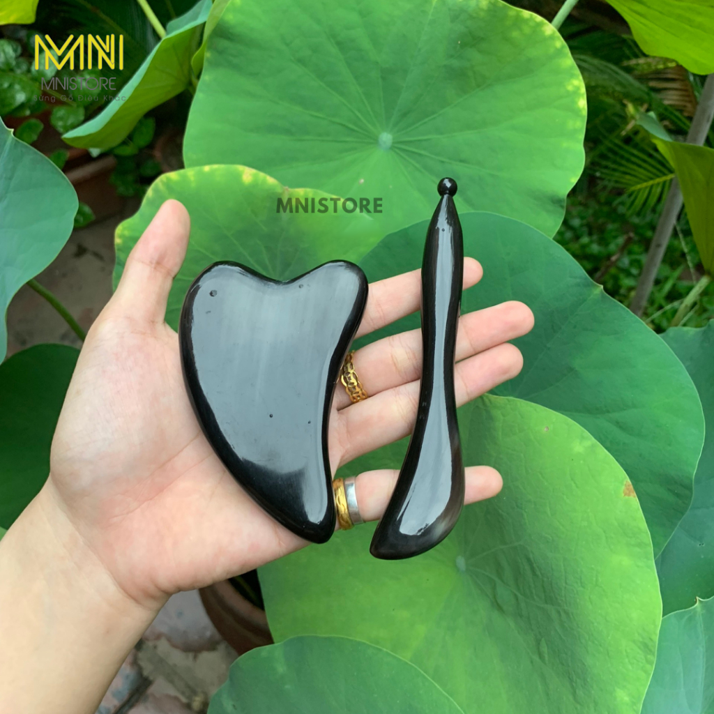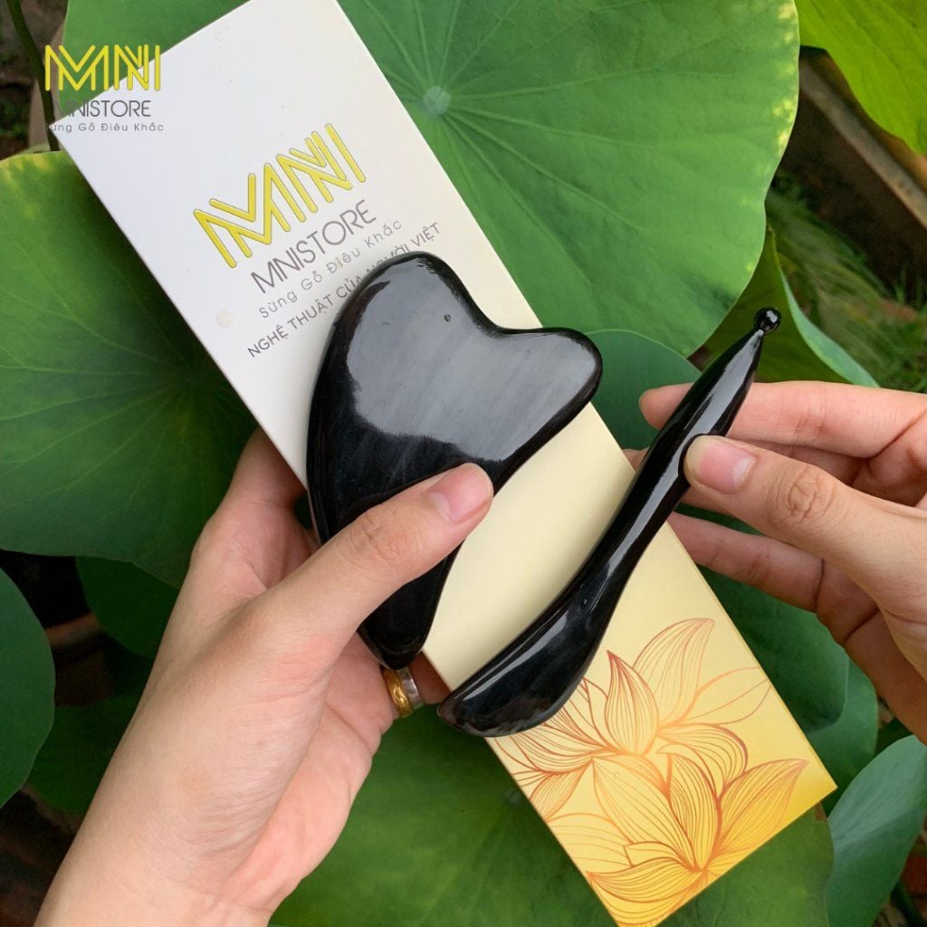 Bộ Massage Mặt Guasha Nâng Cơ & Cày Bi Mnistore Chế Tác Từ Sừng Trâu, Giúp Massage Guasha Nâng Cơ, Cây Bi Mịn Da, Massage Cằm Cổ, Day Huyệt. Kích Thước 9-11cm, Độ Dày 4mm-1cm
