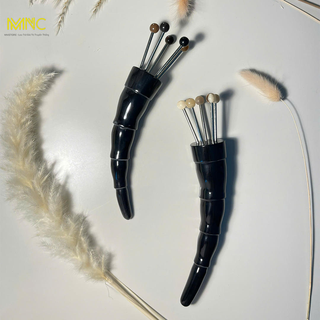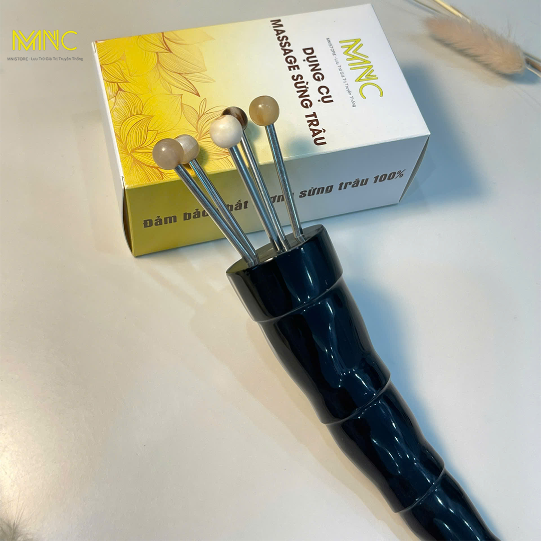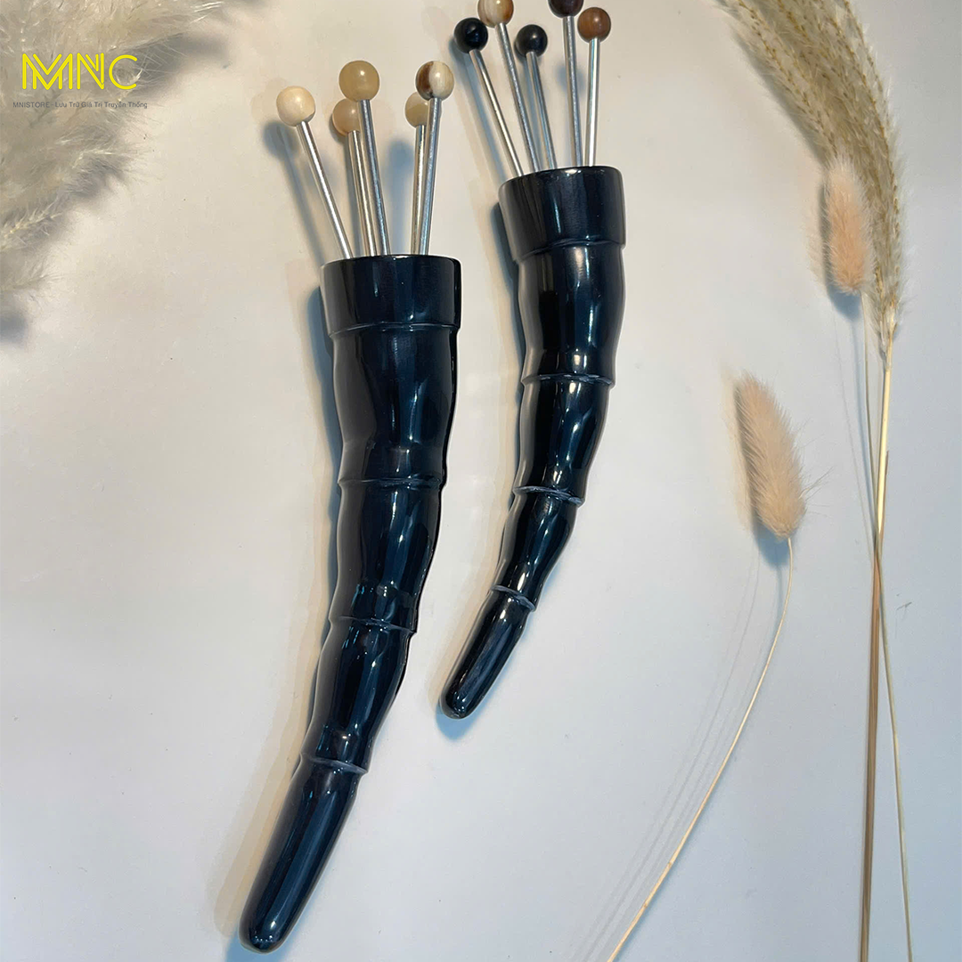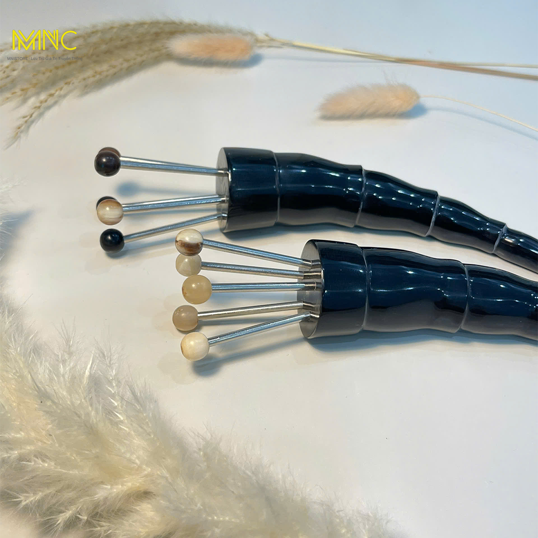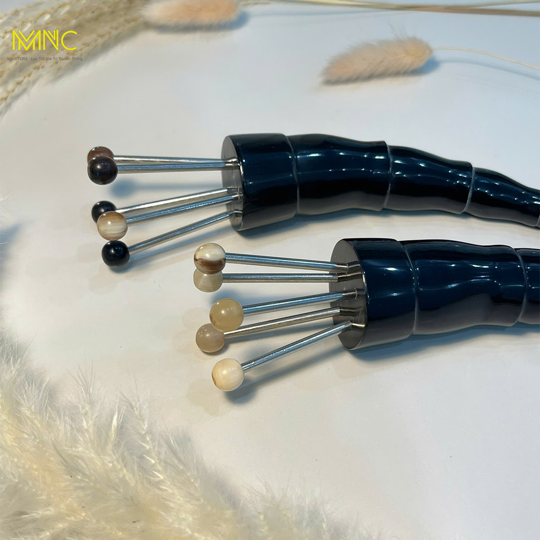 Dụng cụ đay huyệt diện chẩn 5 bi sừng trâu, giúp lưu thông máu, thư giãn, giảm căng thẳng