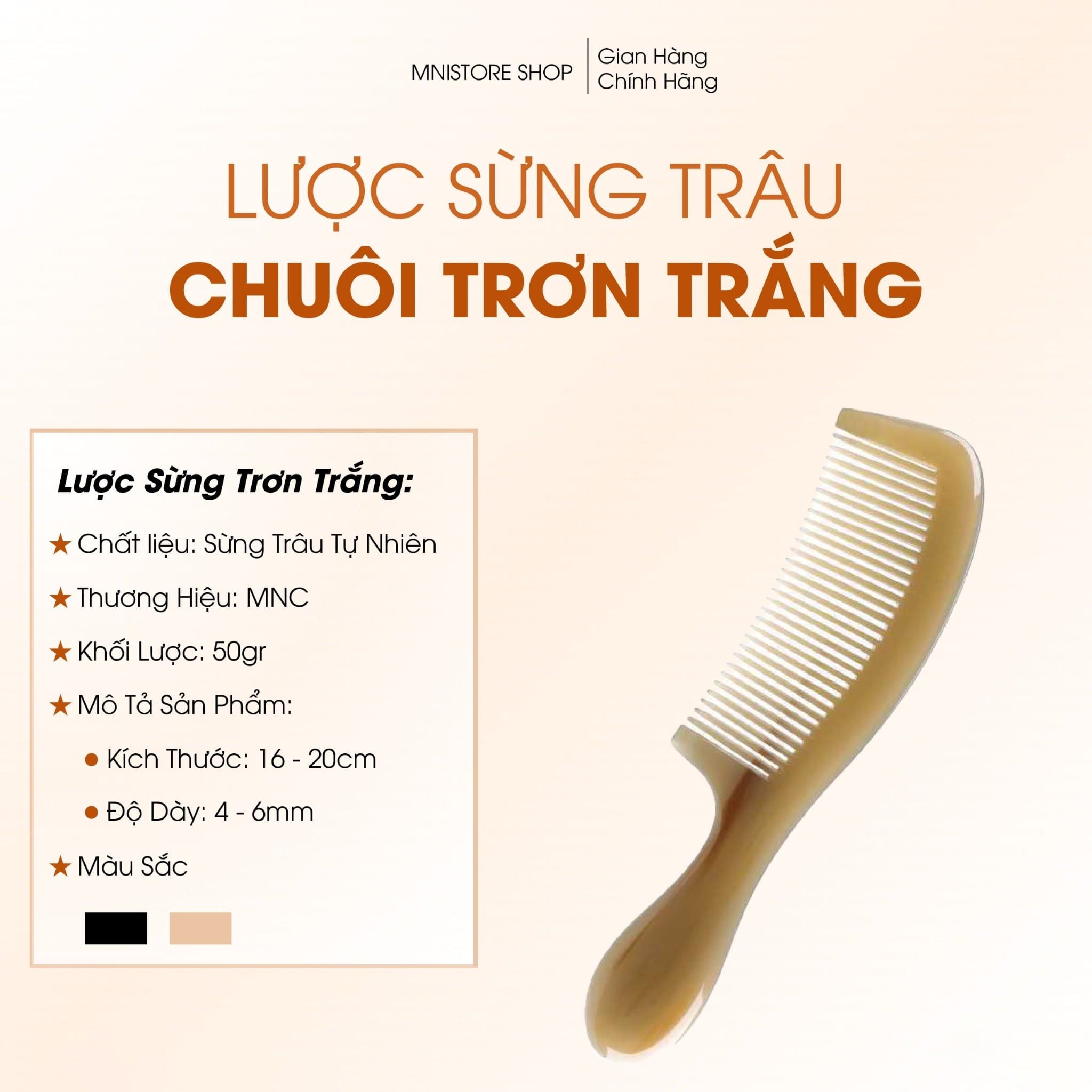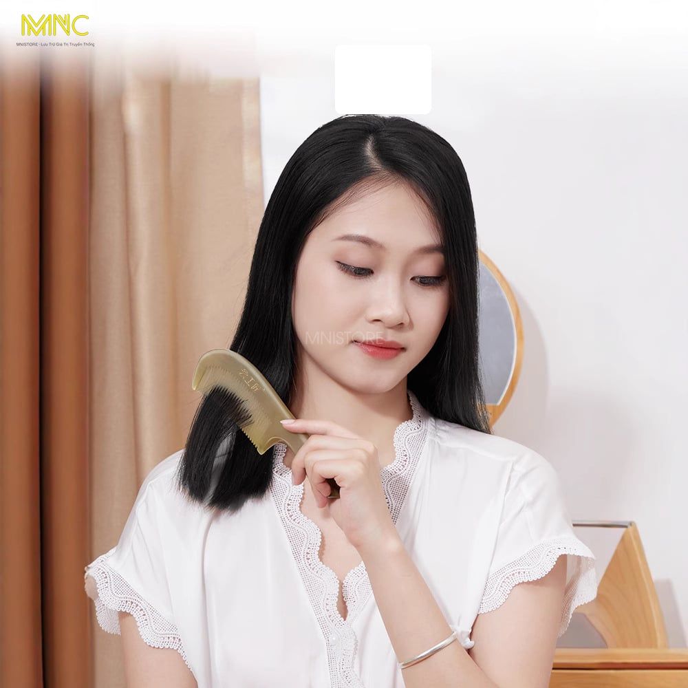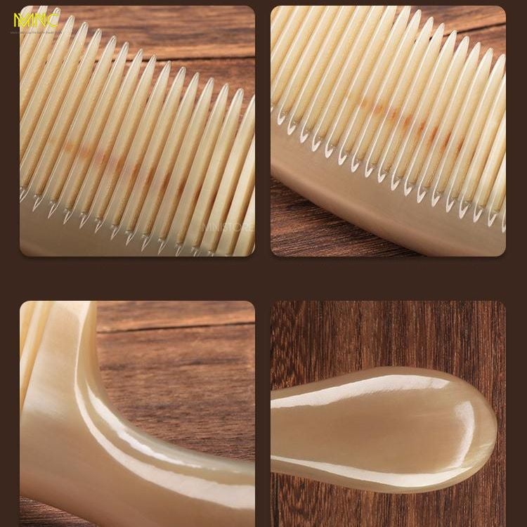 Lược Sừng Chuôi Trơn Trắng Mnistore, màu sắc trắng lưa, kích thước 16cm đến 20cm dày 3-11mm, Chăm Sóc Tóc - Chống Tĩnh Điện - Kích Thích Tuần Hoàn - Giảm Đau Đầu